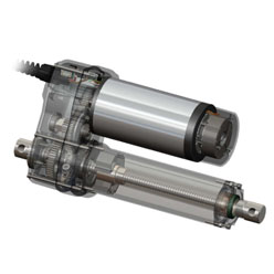 電動推桿是一種新型的直線驅(qū)動裝置。它有電機、螺絲、螺母、蝸輪、內(nèi)外導管、限位開關等部件。其工作原理是通過蝸輪和螺桿將旋轉(zhuǎn)運動變?yōu)橹本€運動,使推桿實現(xiàn)上下往復運動。另外,為了滿足客戶的各種需求,電動推