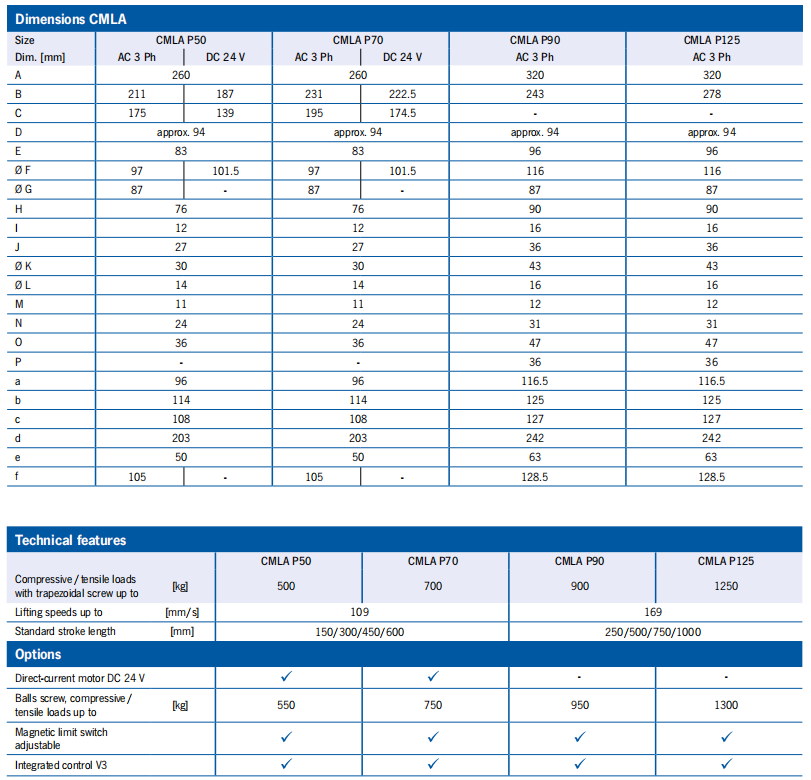 CMLA P50, P70, P90, P125 Technical drawing