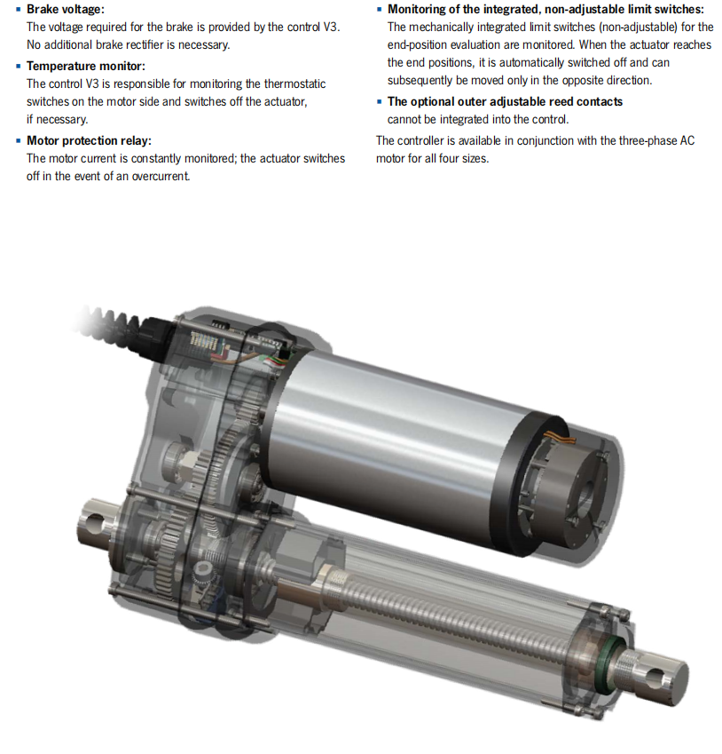 § Long lifetime thanks to case-hardened gears and bronze driving nut. No power-transmitting components made of plastic